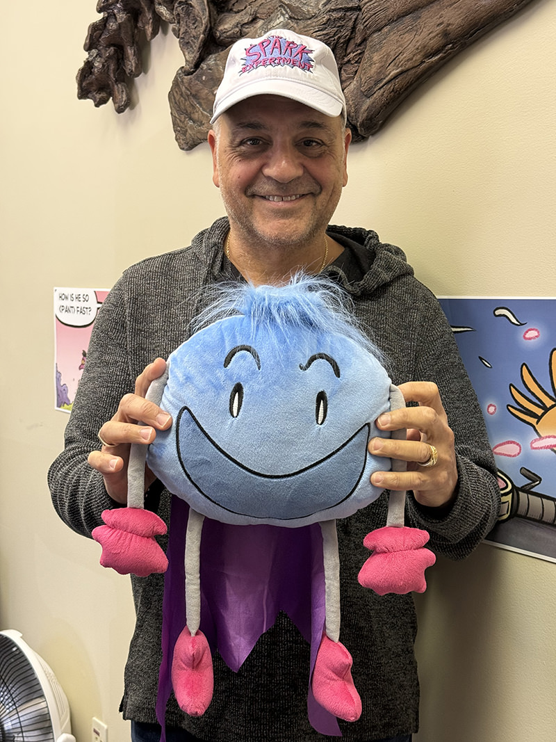 Daniel Shaw, CEO/Founder High Touch Entertainment Corporation with I.M. Spark plush from Teddy Mountain which will be introduced in conjunction with The Spark Experiment graphic novel from Andrews McMeel Publishing April of 2026.